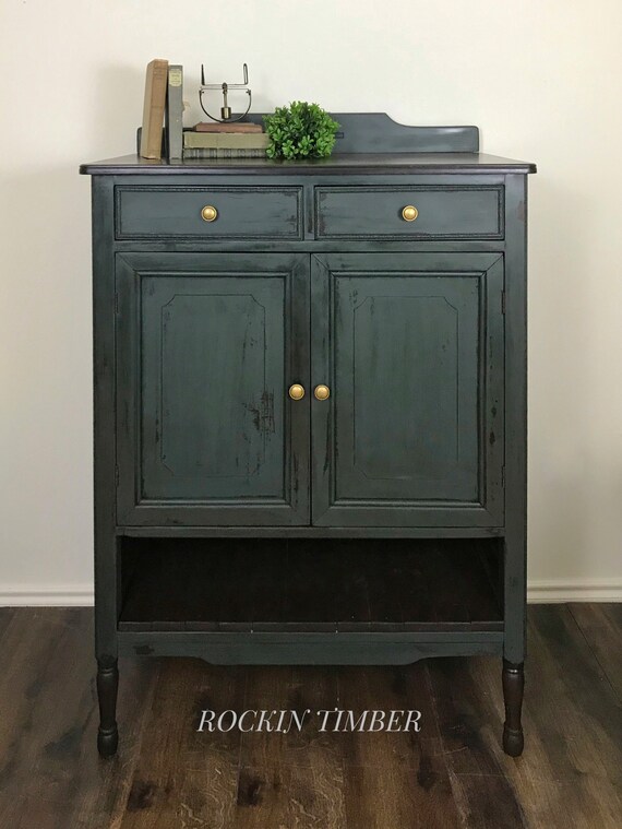 Sold Vintage Cabinet Armoire Entertainment Center Bedroom Storage Liquor Cabinet Dark Green Chippy Farmhouse