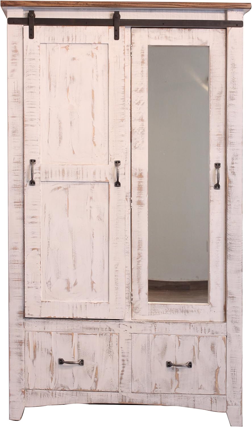 White Anton Sliding Barn Door Armoire Solid