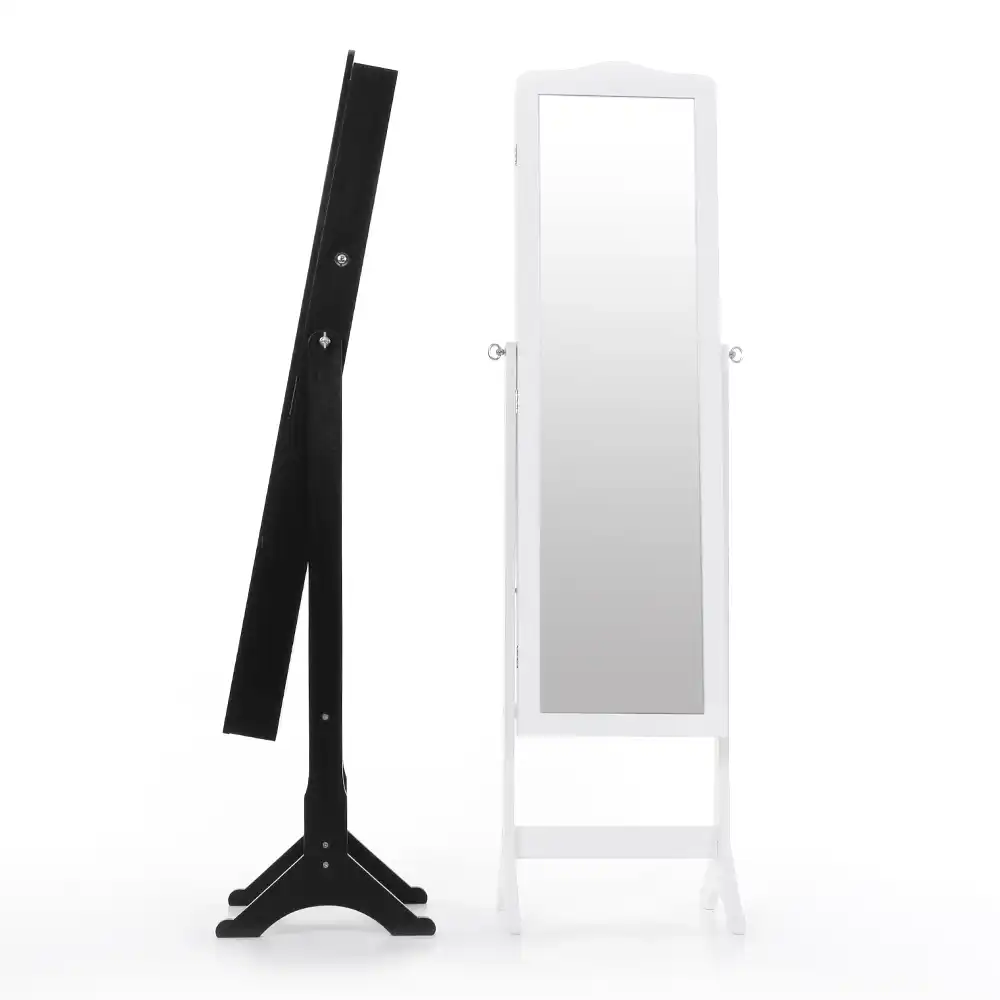 Ikayaa Us Uk Fr Stock Lockable Standing Jewelry Cabinet Armoire Tilt Jewelry Storage Box Organizer With Dressing Mirror