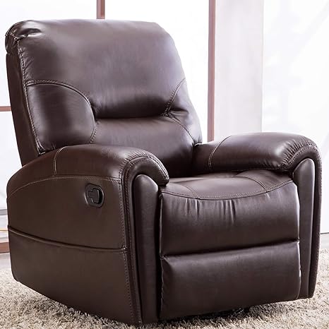 Canmov Manual Leather Recliner Chair Single Seat Sofa Home Theater Seating Chair With Storage Bag Overstuffed Arms And Back Brown