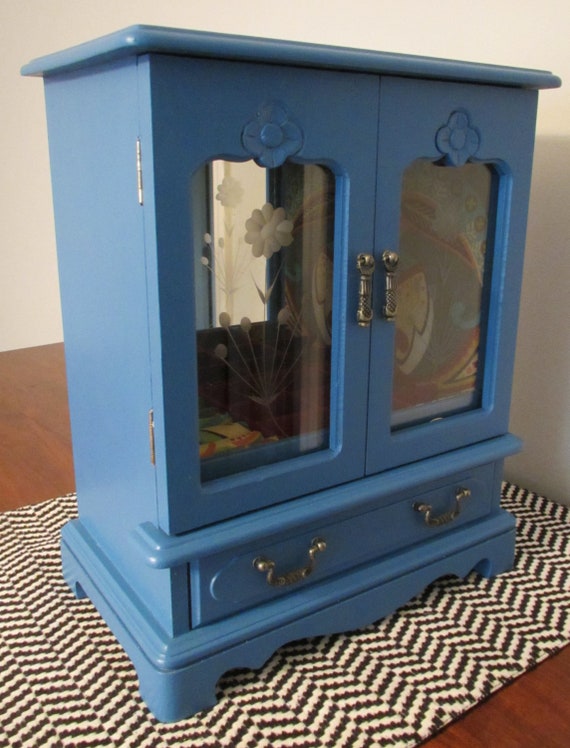 Vintage Painted Jewellery Box Armoire Wardrobe Navy Blue