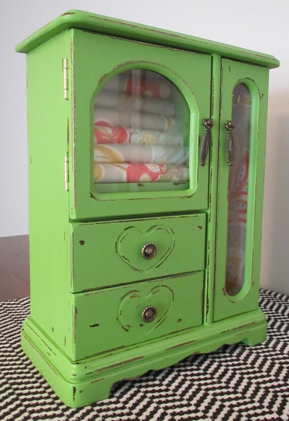 Jewelry Box Armoire Chest Organizer Sour Spring Apple Green Floral Botanical Distressed Shabby Chic