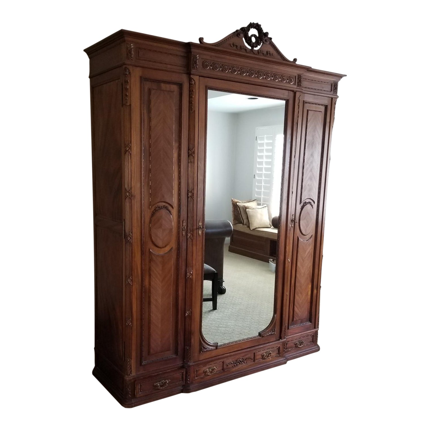 Vintage Mirrored French Armoire