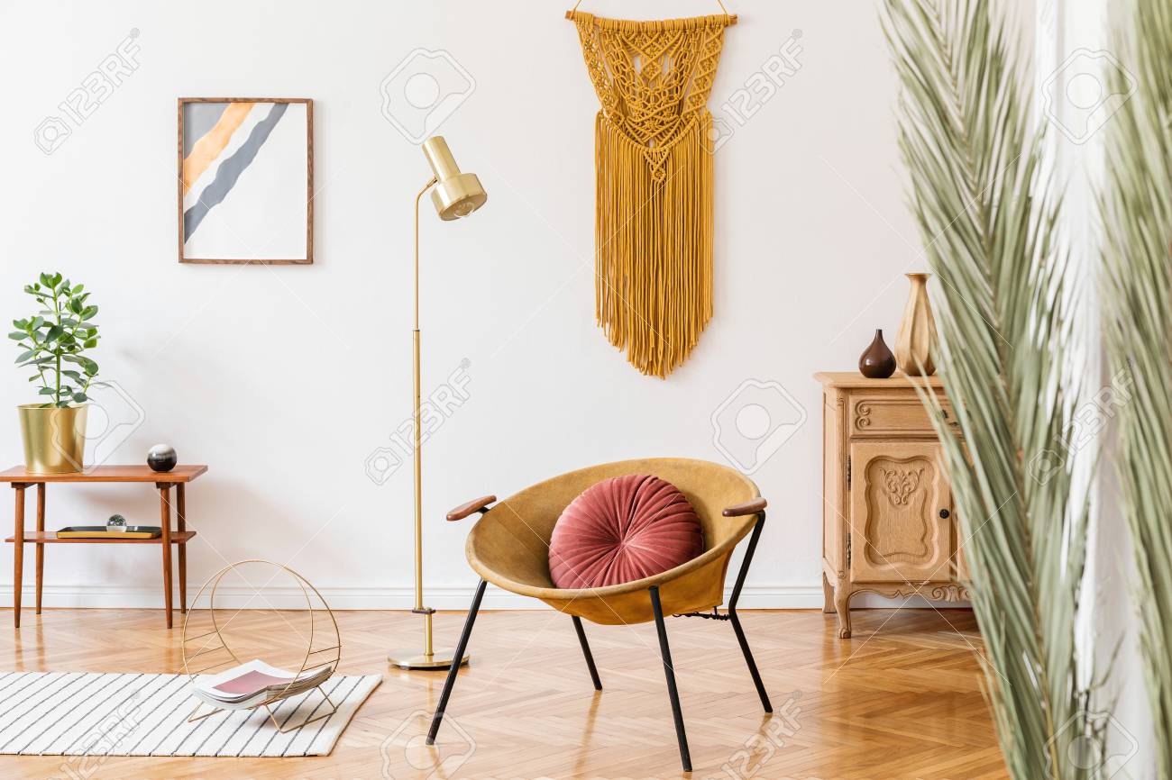 Stylish And Elegant Scandi Home Interior Of Living Room With