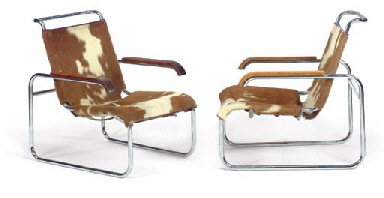 A Pair Of Chromed Tubular Steel And Cowhide Armchairs Model