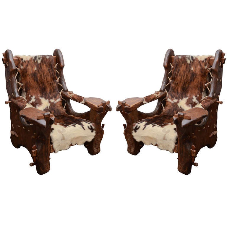 Pair Of Cowhide Armchairs And Ottoman Via Antica Recent