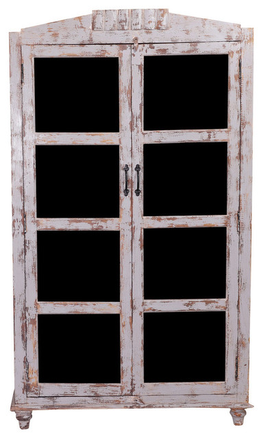 Aynor Glass Door And Rustic Distressed Reclaimed Wood Armoire Cabinet