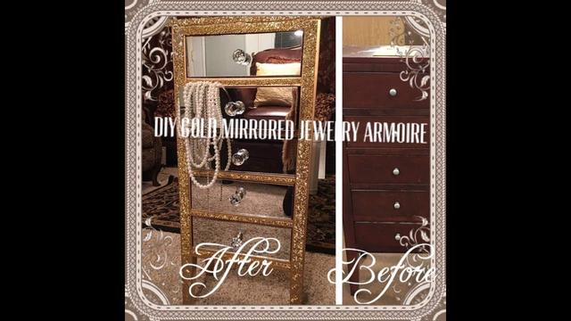 Mirrored Gold Jewelry Armoire Goodwill Makeover Diy