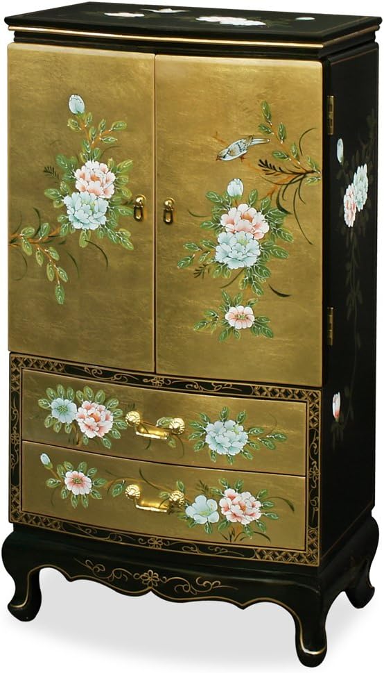 Oriental Furniture 9 Drawer Gold Lacquer Jewelry Cabinet
