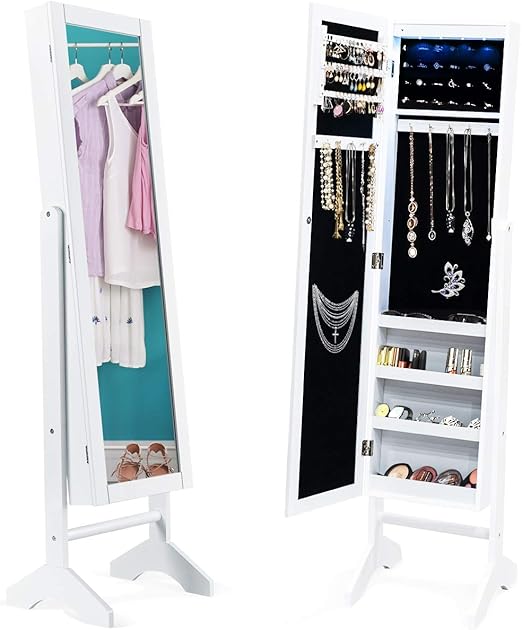 Homcom Standing Mirror Jewelry Armoire Cabinet Organizer For
