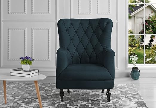 Plush Classic Tufted Linen Fabric Armchair Living Room Chair Grey Blue