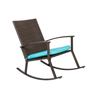 Cushioned Rattan Rocker Armchair Outdoor Patio Wicker Rocking Chair