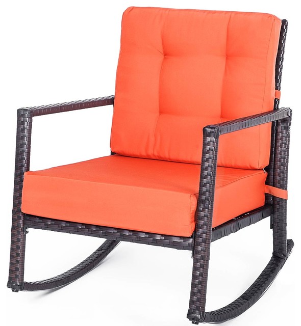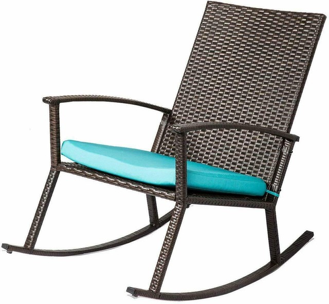 Patio Rattan Rocking Chair Rocker Armchair W Cushion Outdoor Garden Furniture