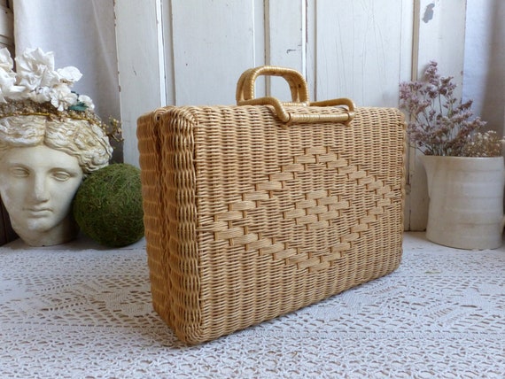 French Vintage Wicker Valise Wicker Sewing Case Knitting Embroidery Crewelwork Armoire Storage Basket Jeanne D Arc Living