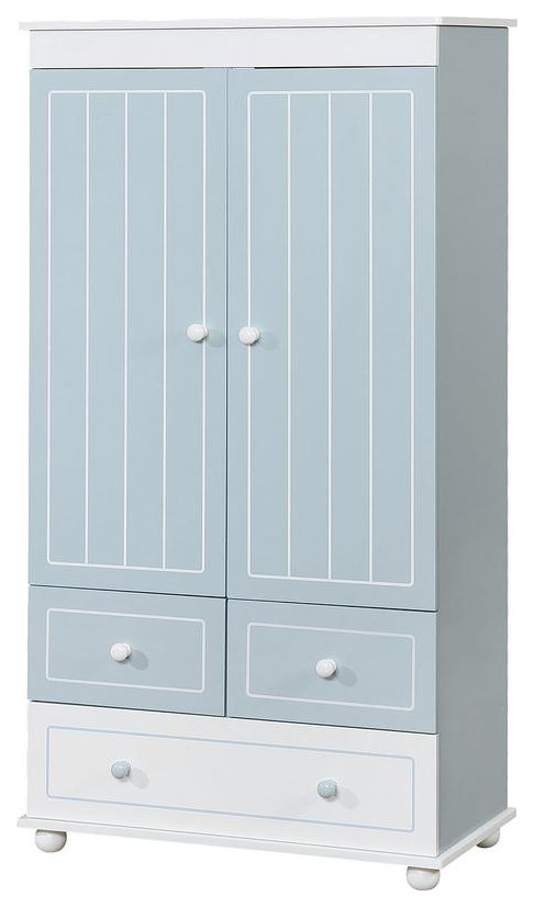 Wooden Armoire With Three Bottom Drawers In Blue And White