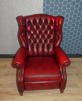 Chesterfield Style Red Leather Reclining Armchair 1960s
