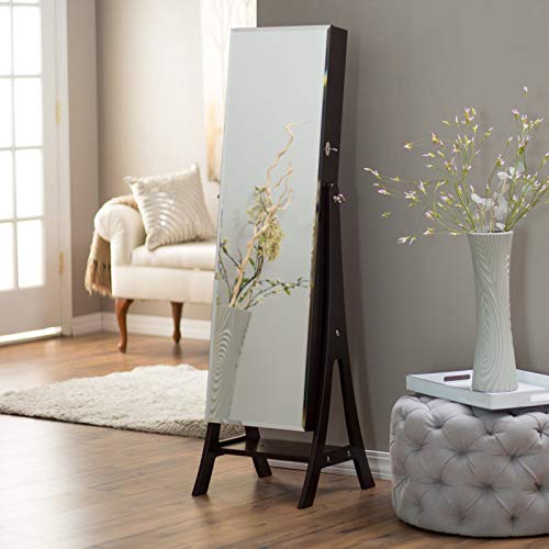Aromzen Large Standing Mirror Locking Cheval Jewelry Armoire Espresso