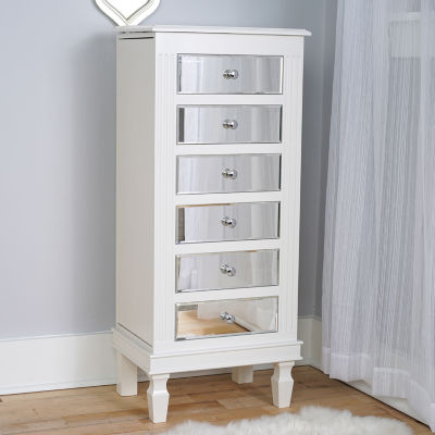 Mirrored Jewelry Armoire With Silver Tone Wood