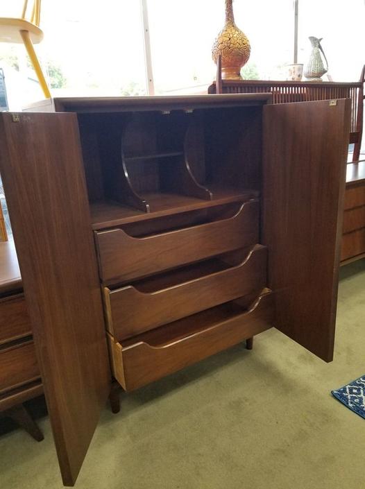 Mid Century Modern Walnut Armoire With Sculpted Front