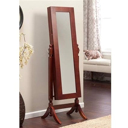 Full Length Tilting Cheval Mirror Jewelry Armoire In Cherry Wood Finish