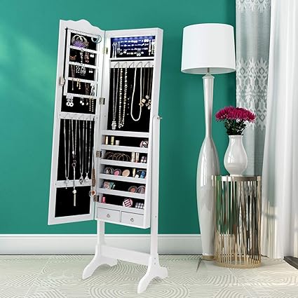 Jewelry Box Armoire Mirrored Floor Standing Ring Necklace