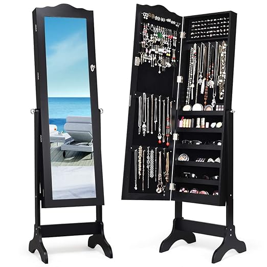 Costway Lockable Jewelry Armoire Cabinet Floor Standing Box