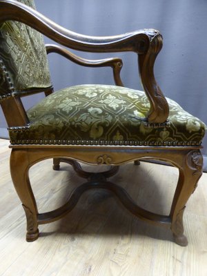Antique French Velvet Walnut Regency Style Armchairs Set Of 3