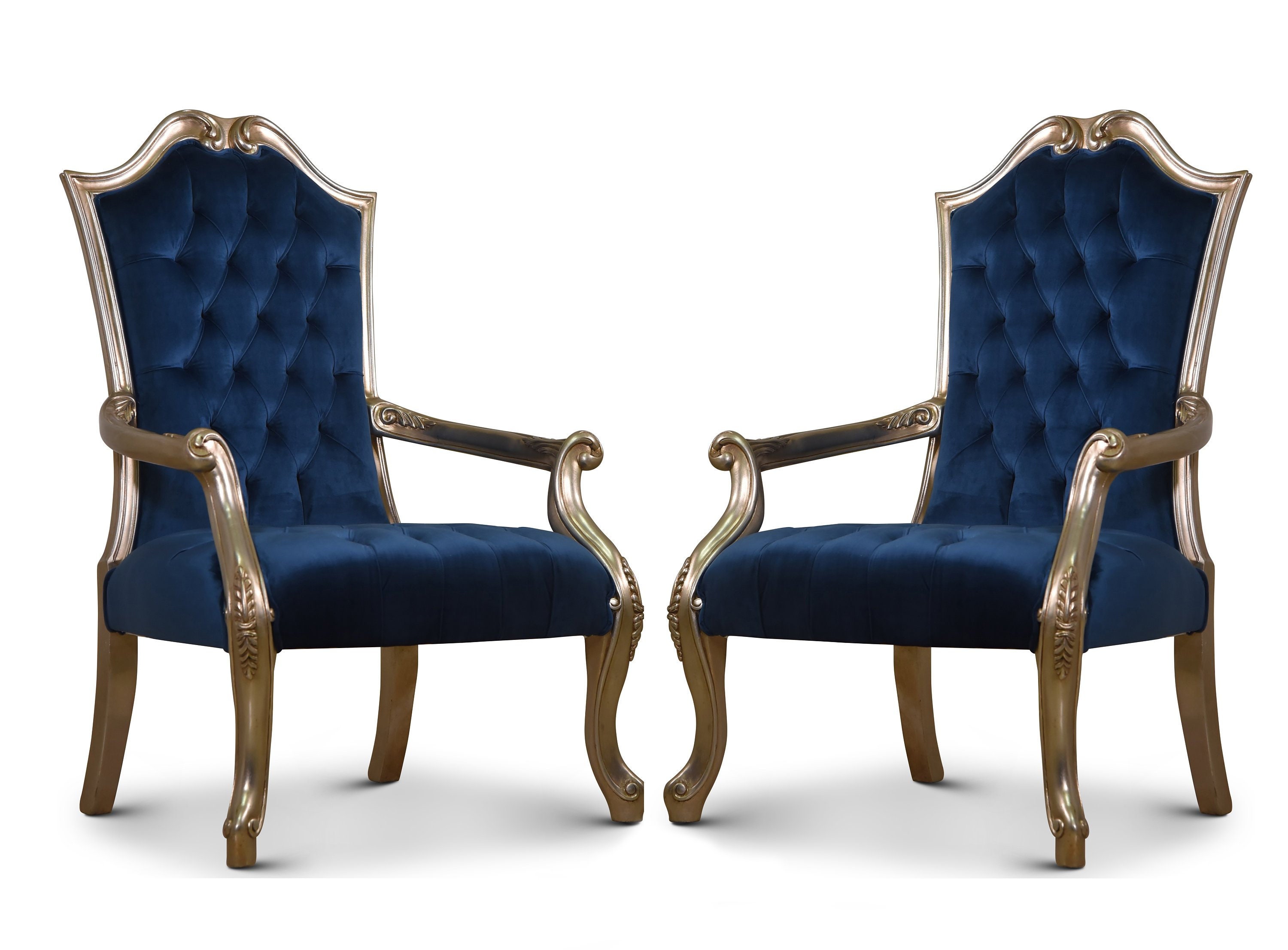Jasmin D Espagne French Style Silver Leaf Tufted Velvet Armchair Set Of 2