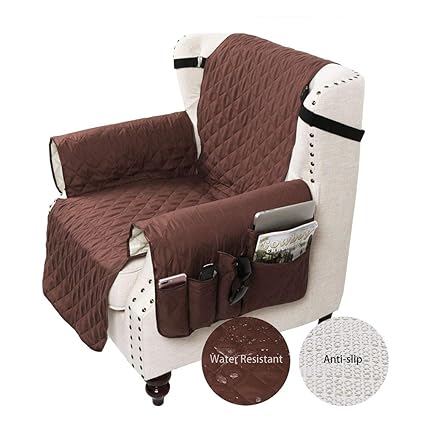 Sanli Chair Cover With Tv Remote Control Holder Armrest Organizer Sofa Chair Protector With 5 Pocket Armchair Caddy Chair Size 22 Coffee