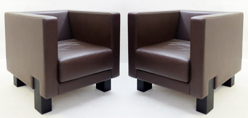 Vintage Moji Brown Leather Armchairs By Shigeru Uchida For Poltrona Frau Set Of 2