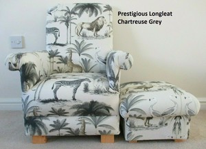 Details About Children S Chair Footstool Kids Armchair Longleat Animals Grey Fabric Lions