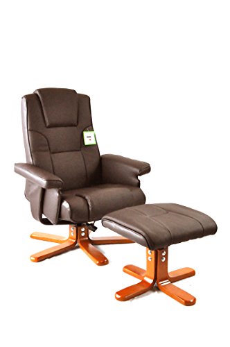 Harvey Williams Windsor Executive Pu Leather Armchair With Footstool Recliner Luxury Faux Leather High Back Desk Study Office Chair Brown