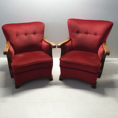 Art Deco Wing Back Red Velvet Armchairs 1930s Set Of 2