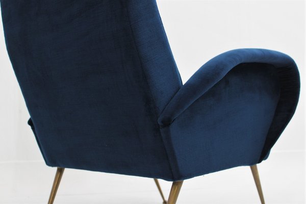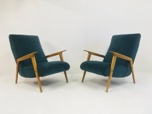 Mid Century Italian Teal Velvet Armchairs Set Of 2