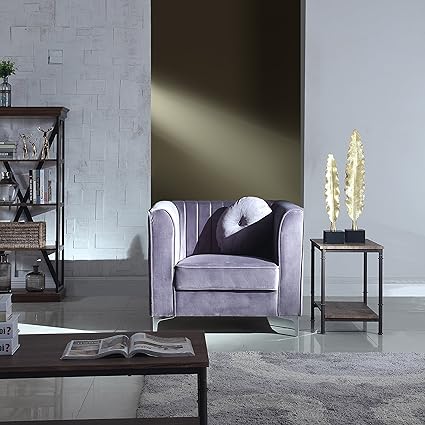 Classic And Traditional Living Room Marilyn Velvet Armchair Club Chair With Tufted Accent Pillows Grey