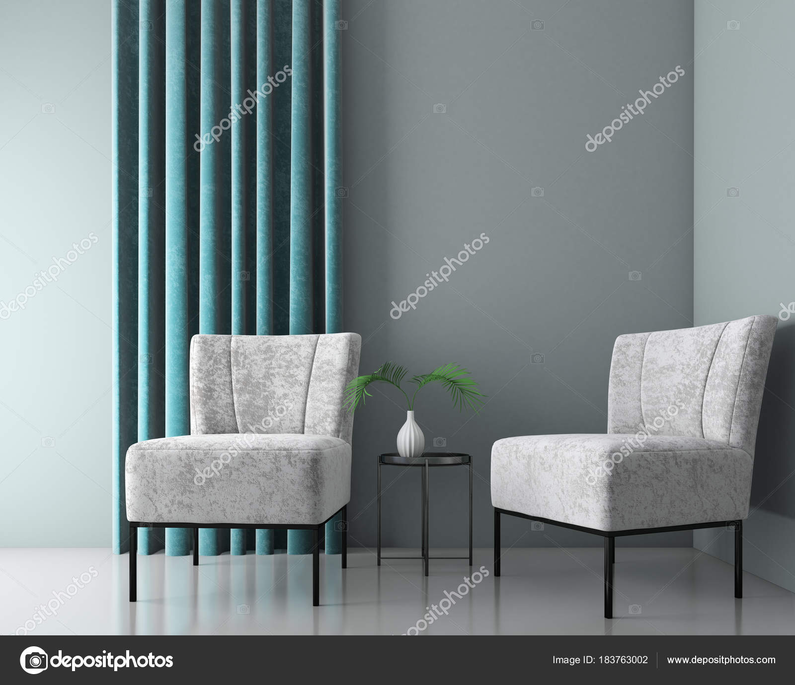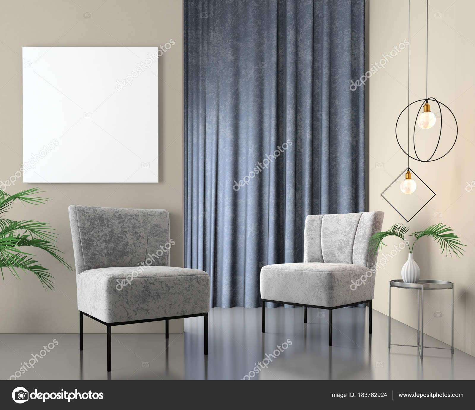 Mock Interior Background Velvet Armchairs Scandinavian Style