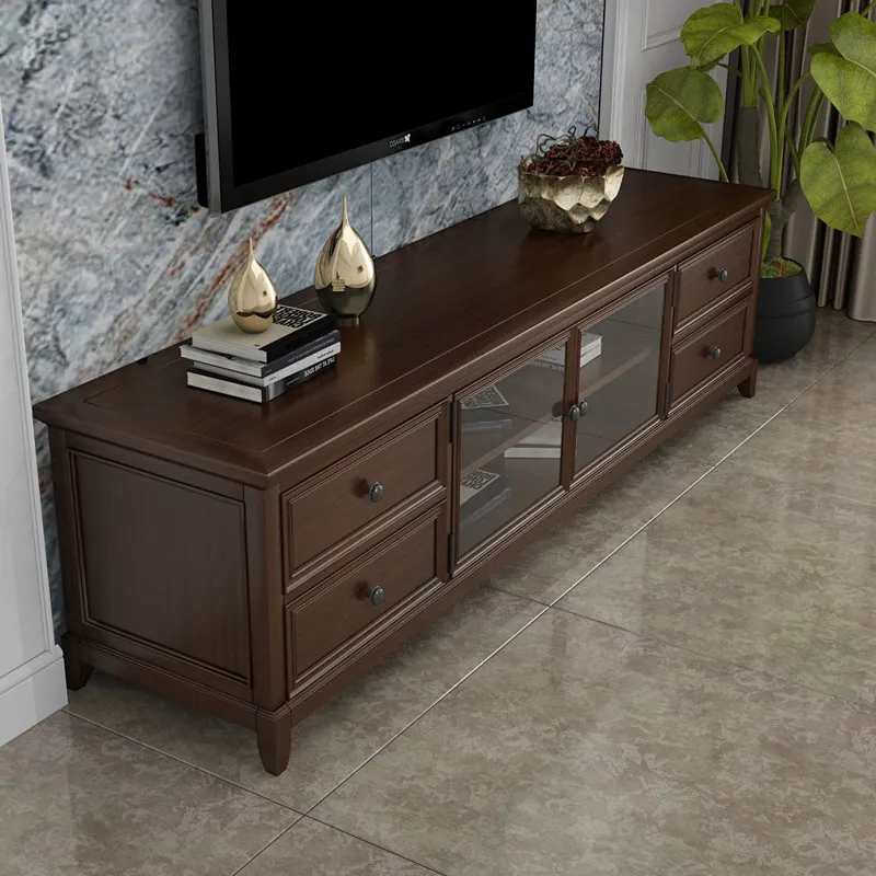 2019 Latest Wooden Tv Stands With Glass Doors Cabinet