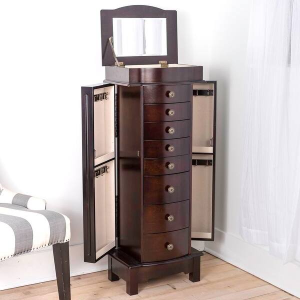 Standing Jewelry Chest Tall Armoire Wood Organizer Cabinet