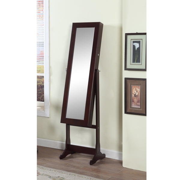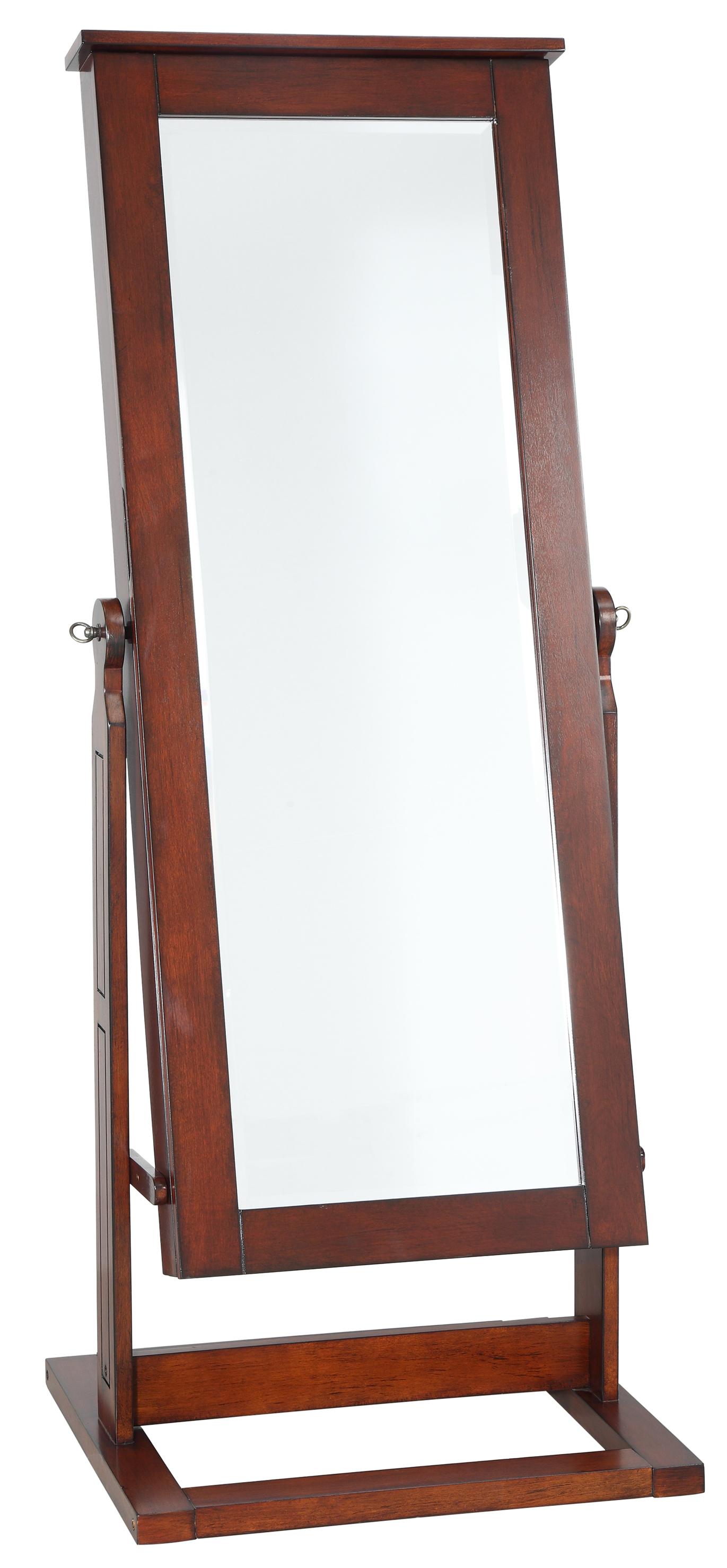 Floor Standing Tilting Walnut Cheval Jewelry Armoire With Large Frontal Mirror
