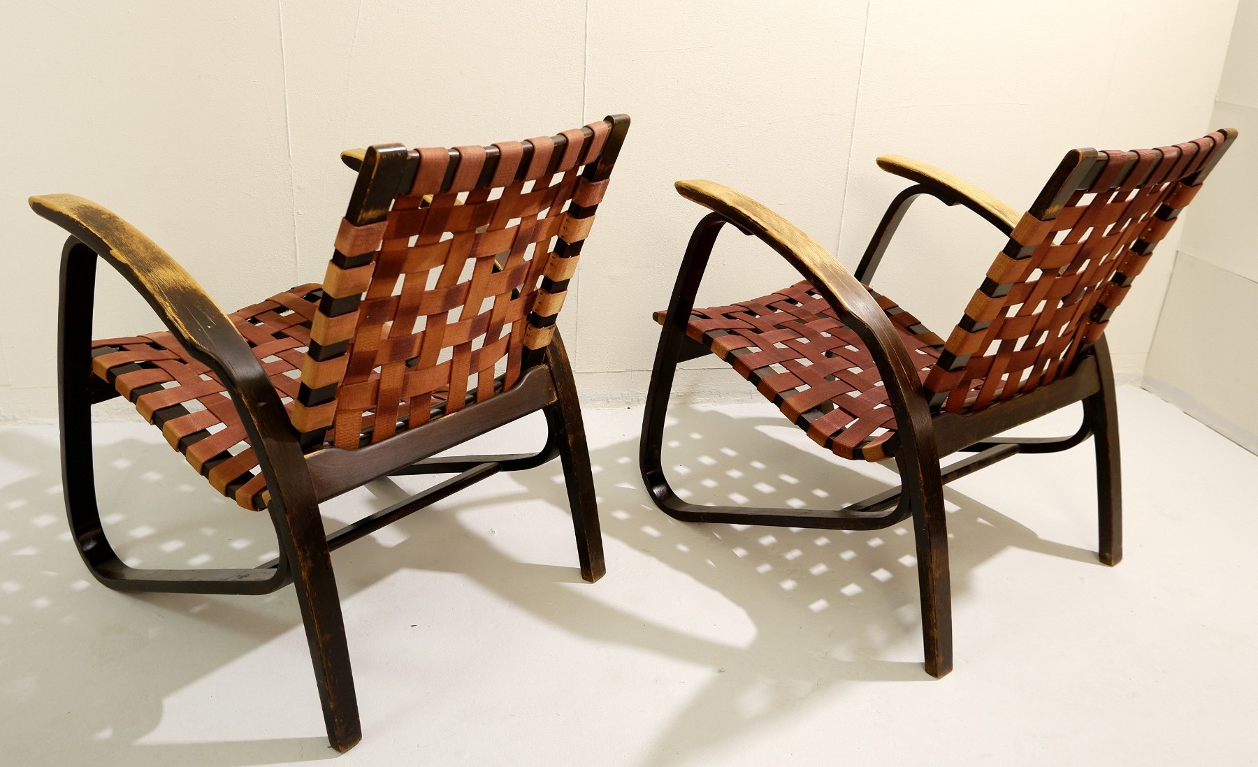 Jindrich Halabala Pair Of Lounge Bentwood Armchairs H 269