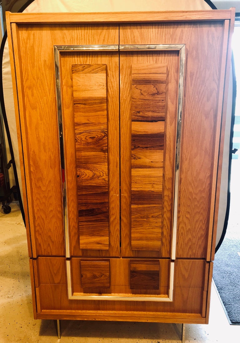 Milo Baughman Style Custom Quality Hi Chest Armoire Chest Wood Chrome Canada