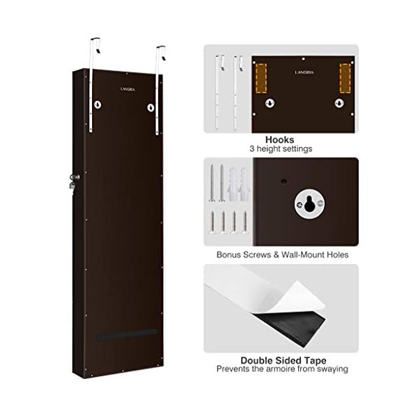 Langria Full Length Mirrored Jewelry Armoire With 10 Automatic Led Lights Wall Door Mounted Cabinet Organizer