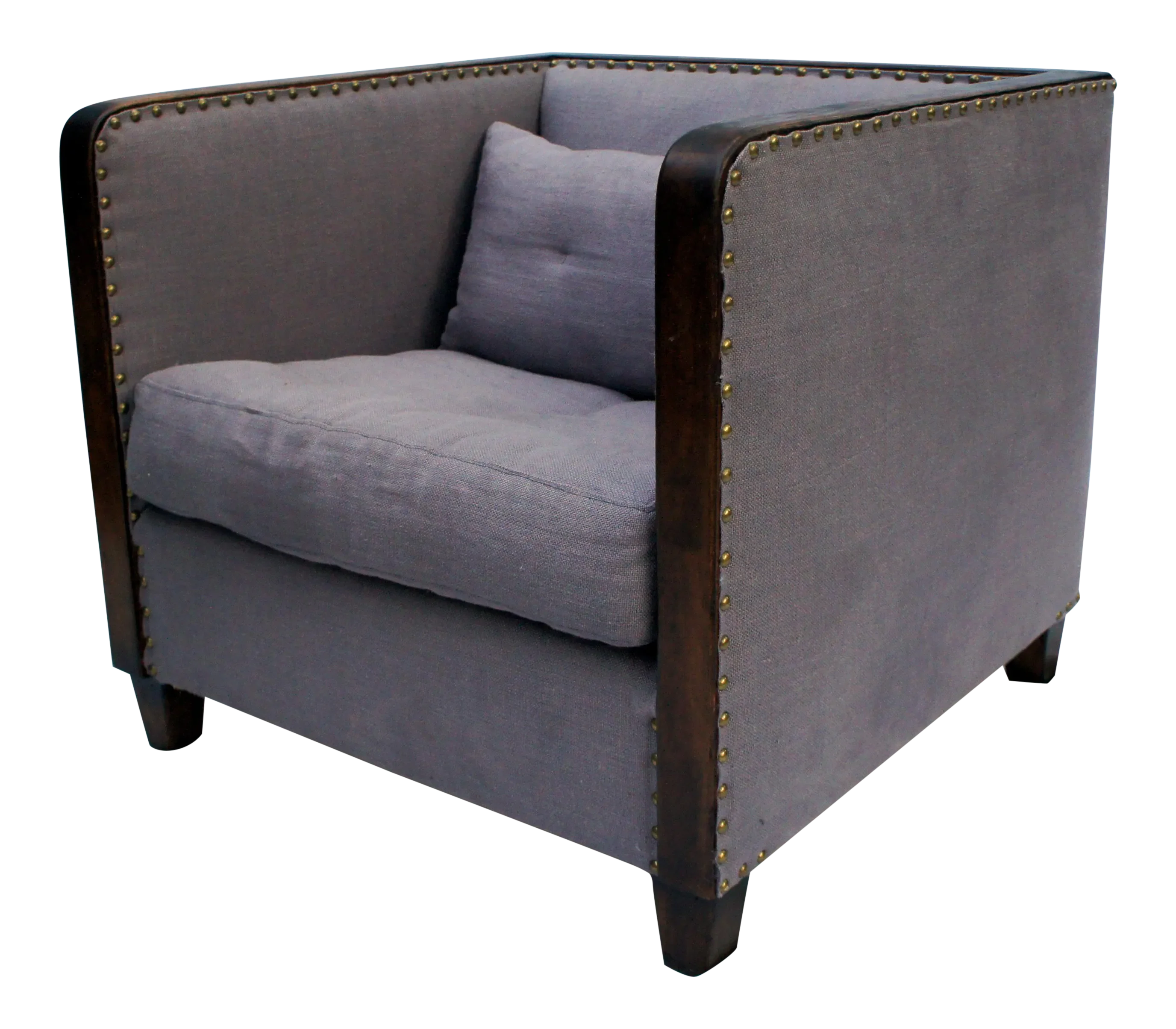 Van Thiel Co Lavender Linen Down Filled Studded Trim Club Lounge Chair
