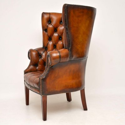 Leather Wingback Barrel Armchair 1930s