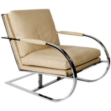Mid Century Chrome And Cream Leather Armchair At 1stdibs