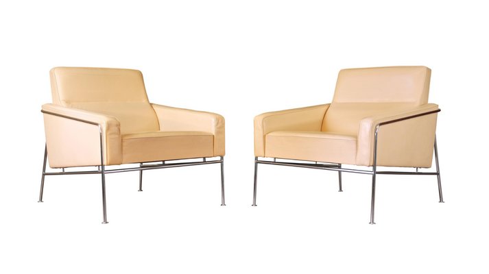 Cream Leather Series 3300 Armchairs By Arne Jacobsen For Fritz Hansen 1950s Set Of 2