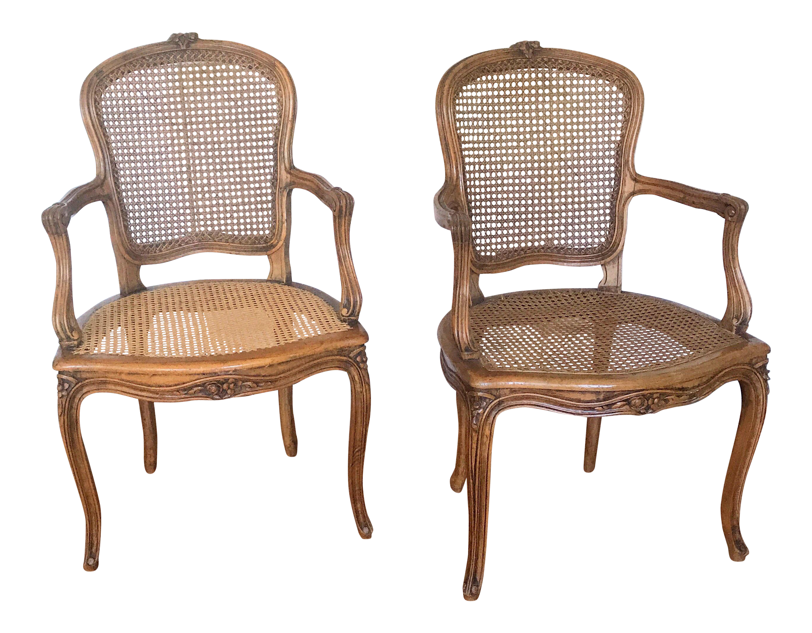 Pair Antique French Louis Xv Walnut Cane Side Chairs