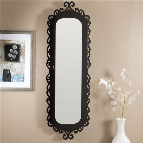 Wall Mounted Jewelry Armoire Mirror With Gloss Black