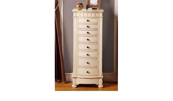 Amazon Com Jewelry Armoire Antique Beige Wood With Mirror