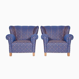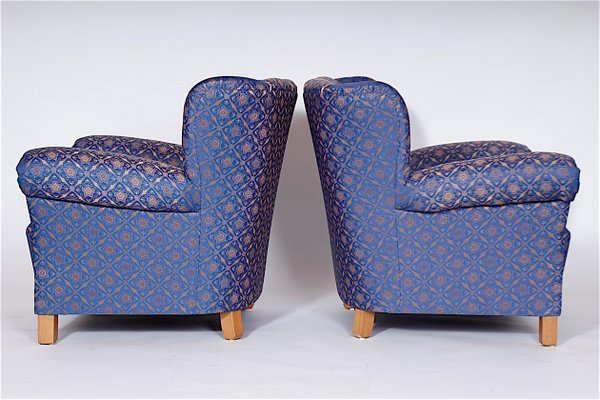 Art Deco Vintage Brocade Silk Wood Club Lounge Chairs Armchairs Spain 1930s